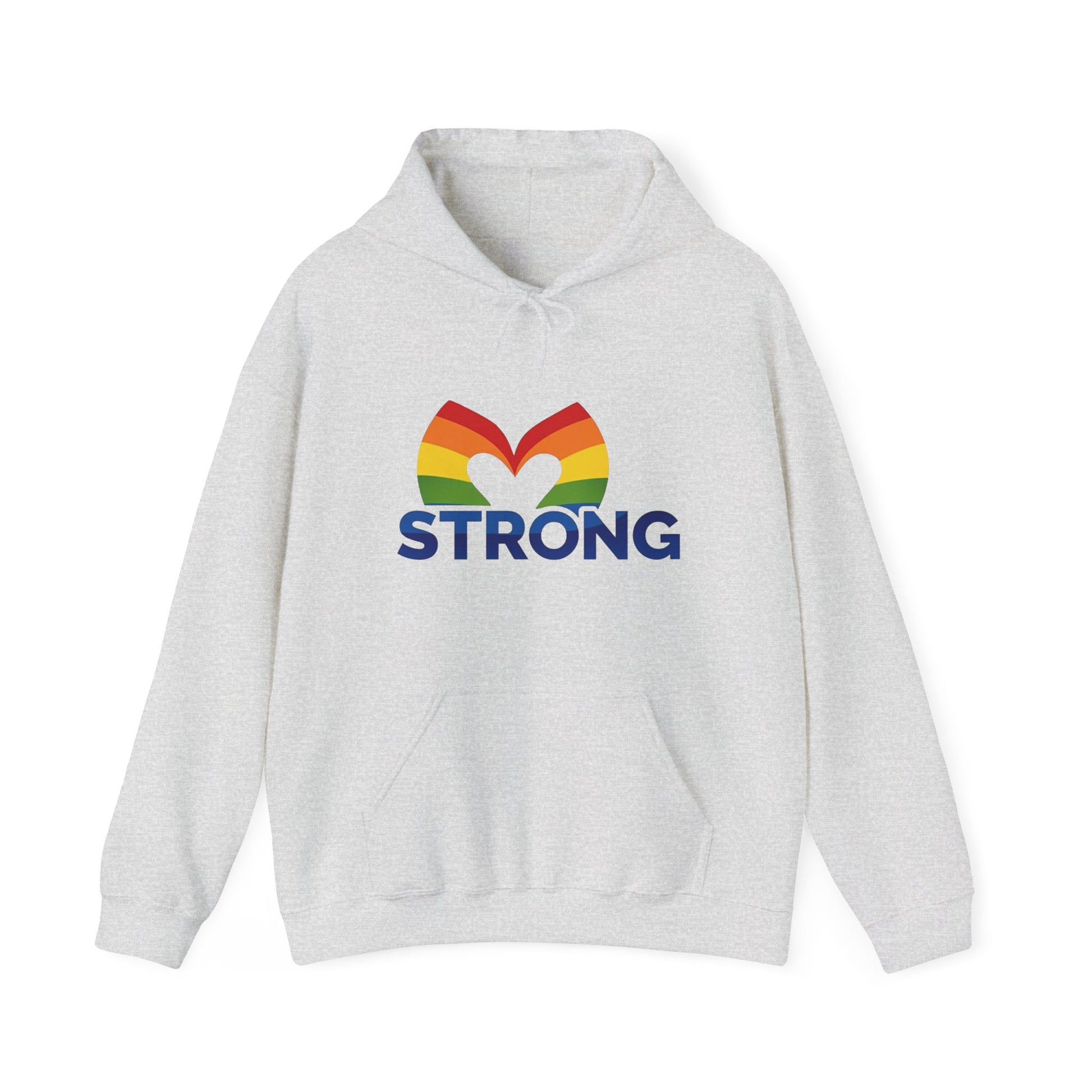 A cozy and warm hoodie featuring a design with heart rainbow hands motif and STRONG in bold. Perfect for adding a pop of color and positivity to your casual wardrobe. Suitable for adults, this hoodie is ideal for everyday wear or as a thoughtful gift for someone special. Perfect for Valentine's Day, LGBTQ+ Pride Month, or any occasion where spreading love and strength is a priority.